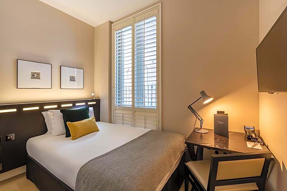 Standard double room with a mini-kitchen, a LED TV and a bathroom with shower or bath. There is a laptop safe, a work desk and complimentary digital newspapers. The room also includes a well-appointed in-room mini-kitchen, fitted with a fridge, microwave, Brita filtered tap and Nespresso coffee machine. This room cannot accommodate a baby cot. No wheel chair access. Not suitable for those with reduced mobility.